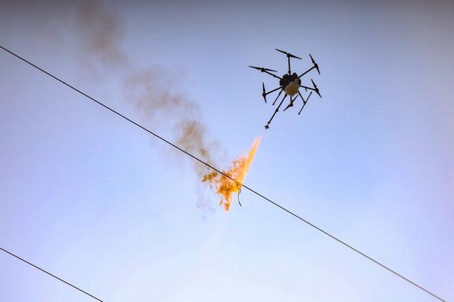 “往左,然后往左,喷火!”5月12日下午,在雅安市雨城区三雅苑广场,国家电网雅安电力(集团)公司专业飞行巡逻队成员齐心协力,用喷火无人机清理广场上...