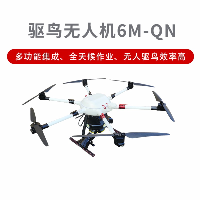 6M-QN是千里眼航空推出的驱鸟无人机经典产品,挂载驱鸟器由高音喇叭、超声喇叭、摄像头、360°旋转爆闪射灯等构成,实现联网远程操作,日夜皆可工作。6M-1300无人机平台延续了“6M”系列的高可靠性和便捷性,采用了新一代动力系统,进一步提升了飞行和载重能力,强大的性能搭配驱鸟器更完美。