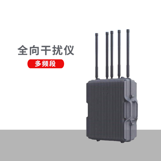 F-03D型多频段全向干扰仪,由天线阵列、全向干扰设备、信号处理设备组成,系统采用窄带宽小功率精准打击和大功率全向干扰相结合的方式,对黑飞无人机遥控链路、图传链路和导航信号进行干扰阻断,迫使其迫降或驱离