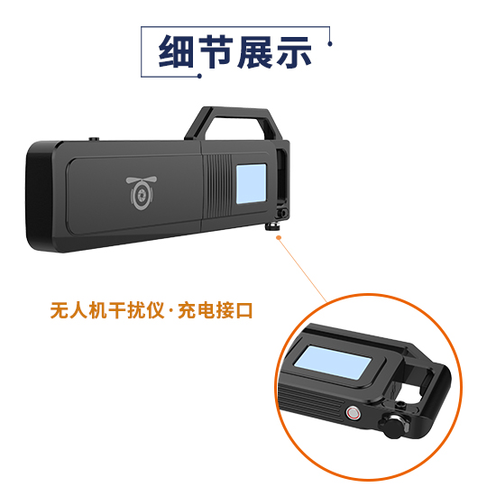 无人机干扰仪,具有体积小、重量轻,便于手持工作的特点,支持后台管理系统,可以随时启动工作。外置电池可减轻设备自身重量,携带轻便,电池更换便捷。设备可以全方位针对无人机进行定向打击和反制管理,达到对黑飞无人机进行迫降及驱离的管控效果。