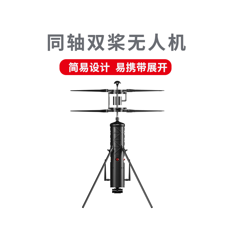 这款共轴双桨无人机整体外观采用圆柱形设计,由螺旋桨、电池、飞行平台、数据链通信模组、AI飞控系统等部件组成。其中旋翼采用折叠式设计,机身可搭载小型吊舱等任务载荷,是一款具备目标识别、任意目标跟踪的小型察打一体无人机。无人机支持挂载光电吊舱和数据链路设备,搭配专用地面站操作端。